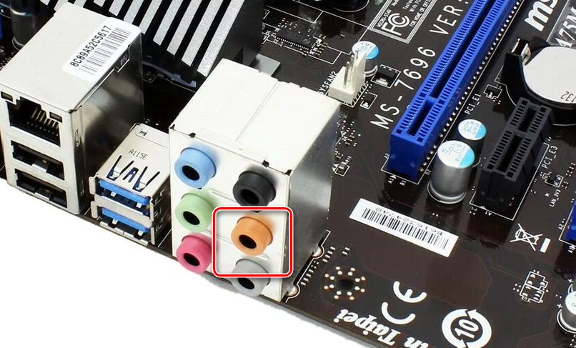 Как видно на изображении, это гнезда типа RCA или «Тюльпаны». Для того чтобы соединить их с компьютером, потребуется переходник с RCA на miniJack 3.5 mm (AUX) типа «male-male».