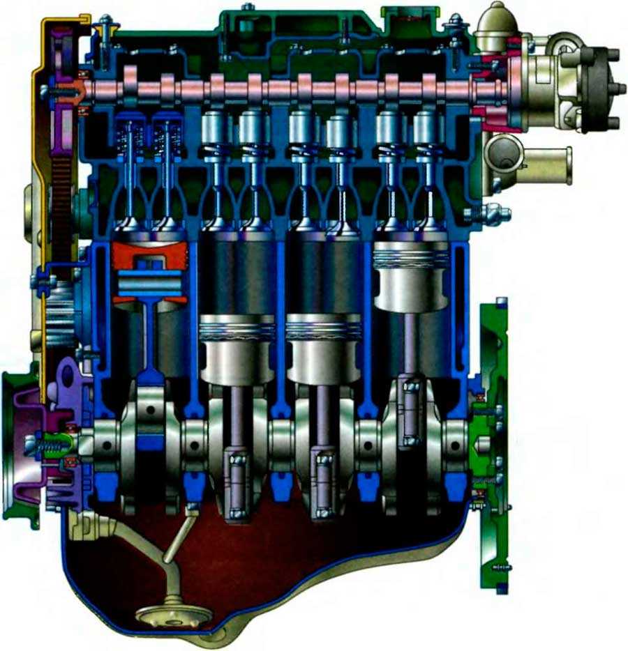 В любом цилиндре рабочий цикл четырехтактного карбюраторного двигателя протекает именно таким образом. Каждая камера сгорания в двигателе нужна для вращения единственного коленчатого вала, воспринимающего усилие от поршней.