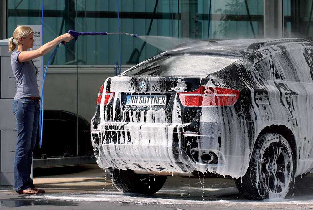 При использовании для мытья автомобиля автомоечной машины следует позаботиться о создании большого объема пены. Смывая пену, автомобилисты обычно не используют специальные насадки, так можно снизить давление воды и сохранить защитную пленку.