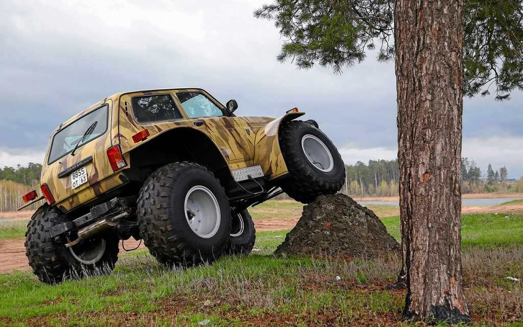 Для болотистой трассы также можно встретить переделки Нивы — болотоходы. Им характерны большие и объемные колеса с шинами низкого давления. У таких транспортных средств просто безупречные характеристики по проходимости в растительно местности.
