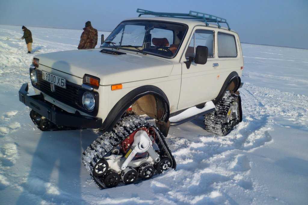 Бывают случаи, когда Ниву умудряются сделать для езды по заснеженной трассе. Это довольно сложный процесс. Основная сложность заключается в создании ходовой части — монтаже системы гусеничных колес. Именно за счет них автомобилю не страшны заснеженные трассы и бездорожье. Такая Нива подойдет и для езды по болоту. Некоторые водители не ставят гусеницы из-за их сложности монтажа и высокой цены. Если сравнивать достоинства и недостатки, то здесь преимущество идет не явно в сторону колес. Именно из-за своего сцепления с поверхностью гусеницы обладают большим спросом. Однако, скорость такого транспортного средства не будет высокой, ну и, конечно, вы не сможете ездить по обычным дорогам.