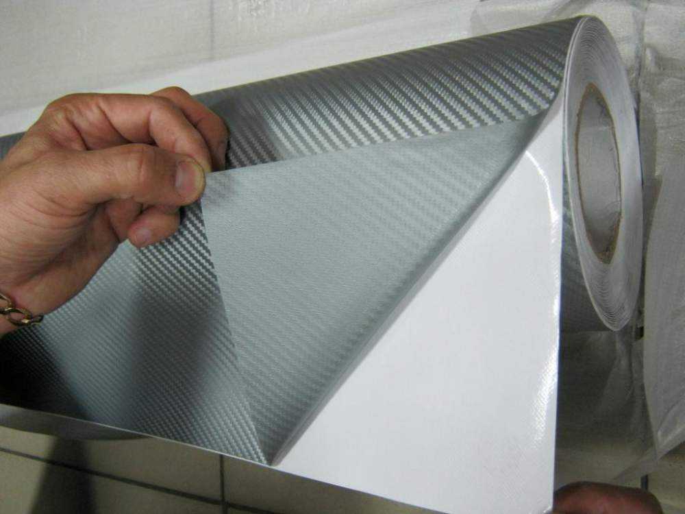 - пленка с рисунком 2D, полностью имитирует переплетение волокон карбона, для прочности покрыта защитным лаковым слоем. Это самый простой вид данного материала;