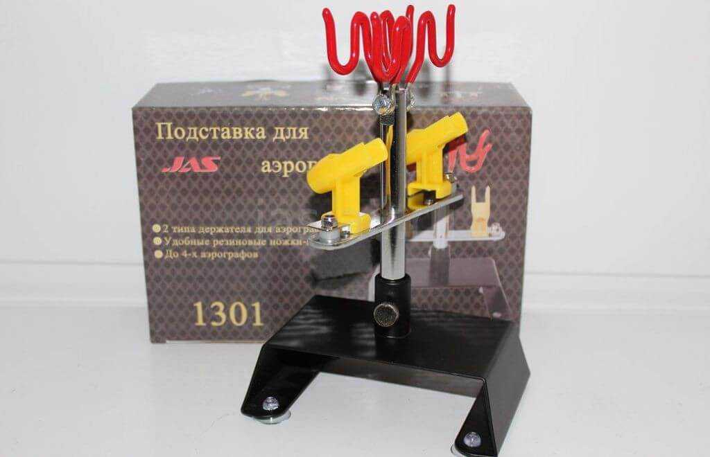 держатель для компрессора, а также аэрографа. Они закрепляются на рабочей поверхности и принимают несколько стандартных положений. Держатели предотвращают падение инструментов, сохраняя их эксплуатационные свойства;