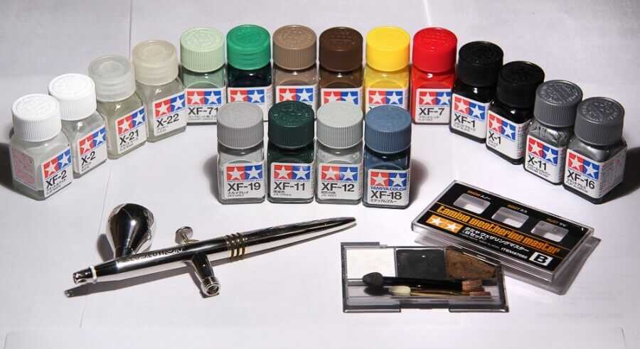 - средства для чистки аэрографа. Представлены спицами, ершиками и различными щетками, которые чистят сопло и каналы красящего прибора;