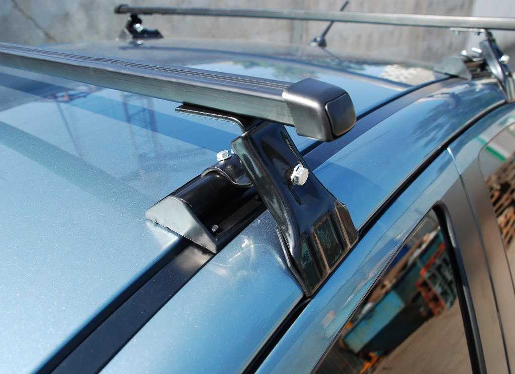 Обычно перекладины на крышу для установки багажника представляют собой две параллельные прямые, которые фиксируются на рейлингах. Во время их изготовления нужно учитывать форму крыши, а также ее ширину. Материалом для них может послужить металлический профиль, выполненный из легкосплавных материалов, или квадратная труба (толщина металла — до 3 мм).