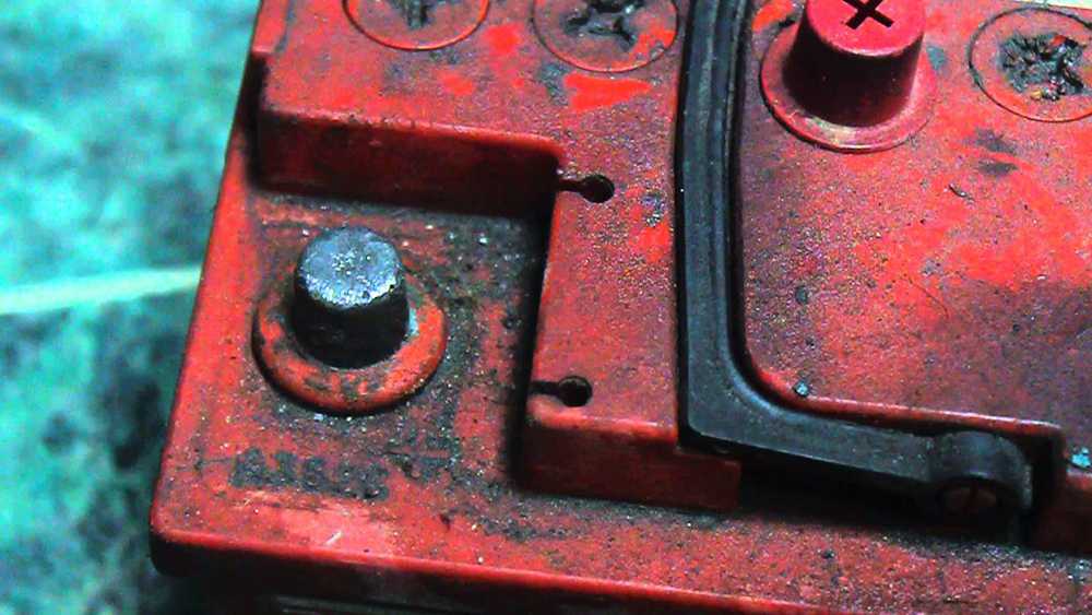 - На старых аккумуляторах серная кислота могла испаряться из банок, в том числе попадая на клеммы.