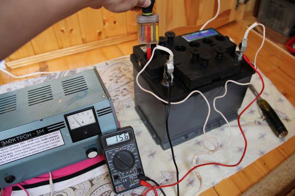 Процедура выполняется около 2-4 часов, до того момента, пока величина напряжения не начнет меняться. Когда это произойдет, зарядный прибор можно отключать. Еще раз необходимо проверить уровень и плотность электролита, если объем недостаточный, то добавляется дистиллированная вода.
