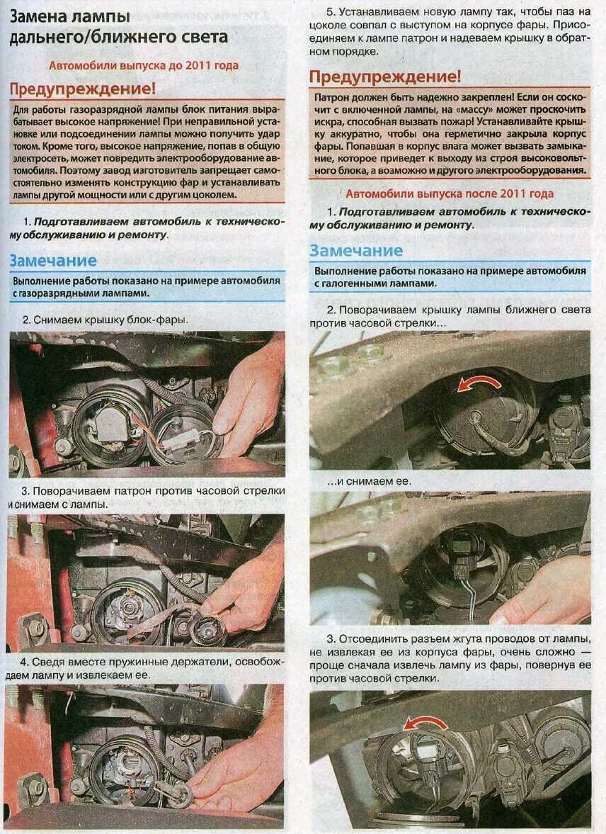 Порядок замены лампы ближнего света