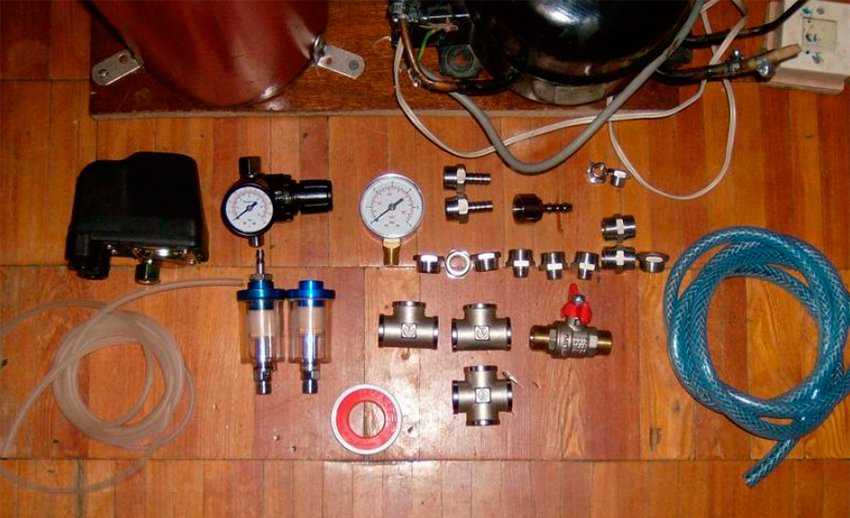 Очевидно, что для работы нам будет необходимо собрать определённые материалы. Итак, чтобы собрать самодельный воздушный компрессор под напряжение в 220В для покраски авто, нам понадобятся следующие детали:
