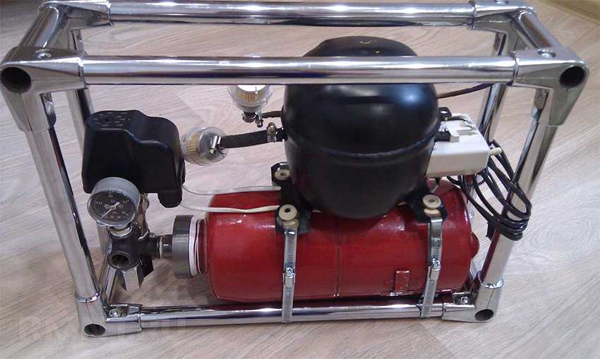 Воздушный компрессор из деталей холодильника и огнетушителя