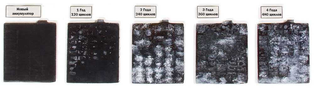 Причины появления белого отложения на пластинах аккумулятора, сульфатации, связаны с нарушением правильной эксплуатации. В период разряда кристаллы PbSO4 образуются всегда, но они малого размера. При зарядке АКБ они снова ионизируются, токопроводная поверхность очищается.