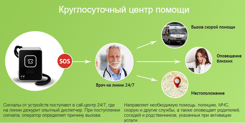 При нажатии СОС вызов передается на пульт оператора «Кнопки Жизни».