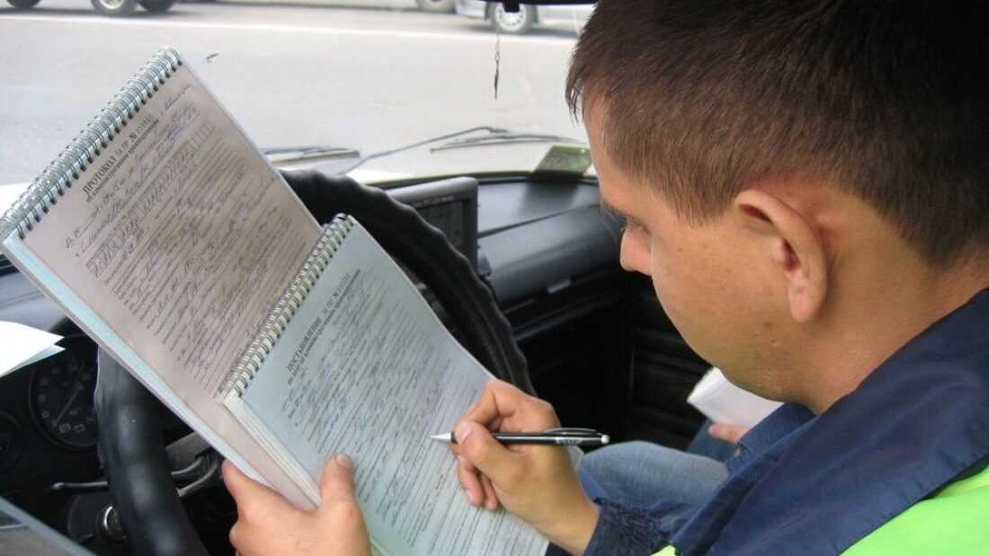 - Полицейский дорожной службы фиксирует нарушение – езда с просроченными правами.